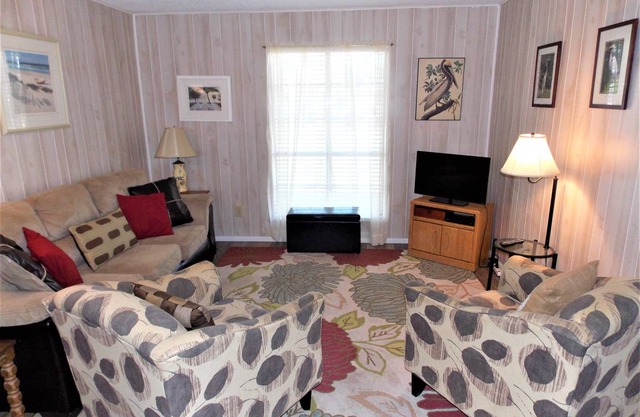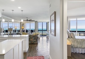 The Sandpiper Condominiums Unit 403L is a 2 Bedroom, 2 Bathroom Condo renting as a 1 Bedroom/1 Bathroom and is facing the beautiful beaches of Mustang Island. The 4th floor offers an exceptional view and this particular unit provides tall patio chairs that allow you to see the views of the beach; without the balcony blocking. The 4th floor is only a short ride down the elevators to the beach, lobby and sundeck area. The lobby area is the connecting route to both the beach and the pool. Come and enjoy the beaches of Port Aransas without the crowds of town in this cozy condominium on the 4th floor. The Living Room furnishings are inviting for ocean gazes from the couch as the windows offer great views directly to the Gulf of Mexico. There is a 55” Flat Screen TV in the Living Room and a connected DVD player. From the Kitchen you can still enjoy the view while making dinner. The Master Suite has a new King sized pillow topped mattress for ultimate relaxation for your beach vacation. There is a 31” Flat Screen TV with a connected DVD player for nighttime entertainment. Connected to this room is the Private Master Bathroom that has a full sized tub with shower capabilities.