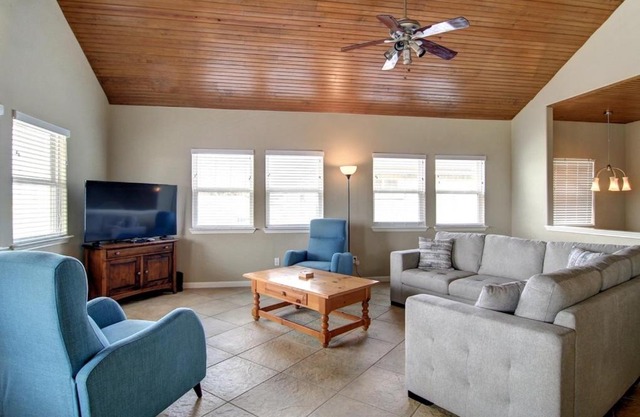 Twin Dolphin Cove is located in Port Aransas, just a 17-minute walk from Port Aransas Beach and 19 miles from Bob Hall Pier. The vacation home has access to a restaurant. The property features a children's playground and parking on-site. With free Wifi, this vacation home provides a satellite TV, a washing machine, and a fully equipped kitchen with a dishwasher and oven. Towels and bed linen are featured in the vacation home. The accommodation offers an air conditioning, a heating, and a private bathroom. Palmilla Beach Golf Club is 1.7 miles from the vacation home, while Port Aransas Marina is 3.1 miles away. Corpus Christi International Airport is 37 miles from the property.