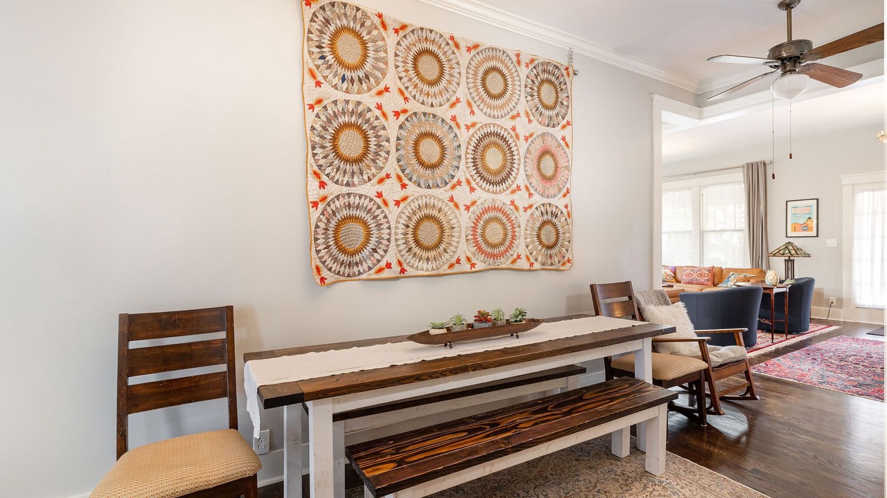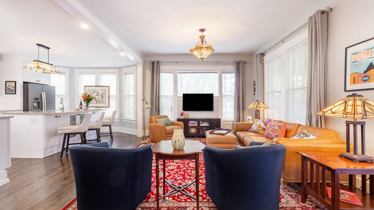 Located in Nashville's most desirable residential neighborhood w/ sidewalks & tree lined streets, this beautiful historic home has recently been renovated to preserve its 100-year old charm and character - modern updated kitchen, bathrooms, lighting and more. Cook's kitchen; 3 spacious bedrooms w/ 5 beds sleeps 8; 2 full bathrooms; custom-made dining table that seats 8-10. Work-study w/ 2 desks, USB ports in every room. Relax on the porch w/ your laptop or friends. Enjoy family time on the deck overlooking the shady back yard, seats 9.