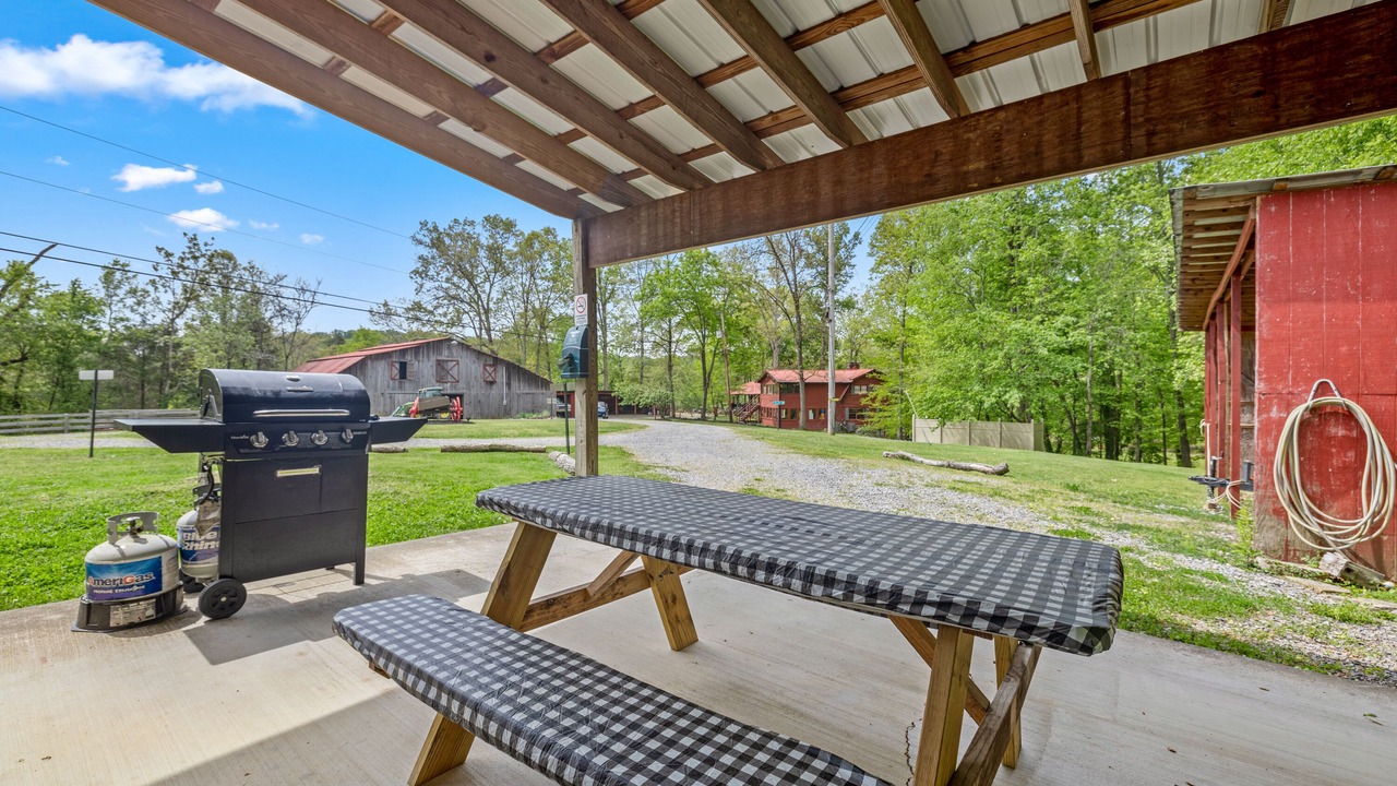 This Farmhouse cabin offers an ideal base for an unforgettable Knoxville and Smoky Mountains visit. The open-concept living area is where you'll create the most memorable moments with your loved ones. Cuddle up on the sofa by the intimate fireplace, watch a movie, discuss your adventures, or prepare delicious bites in the fully equipped kitchen.