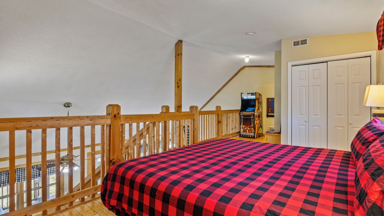 ♛ Master Bedroom (Upstairs Loft): King-Size Bed, Ensuite Bathroom & roll-away twin