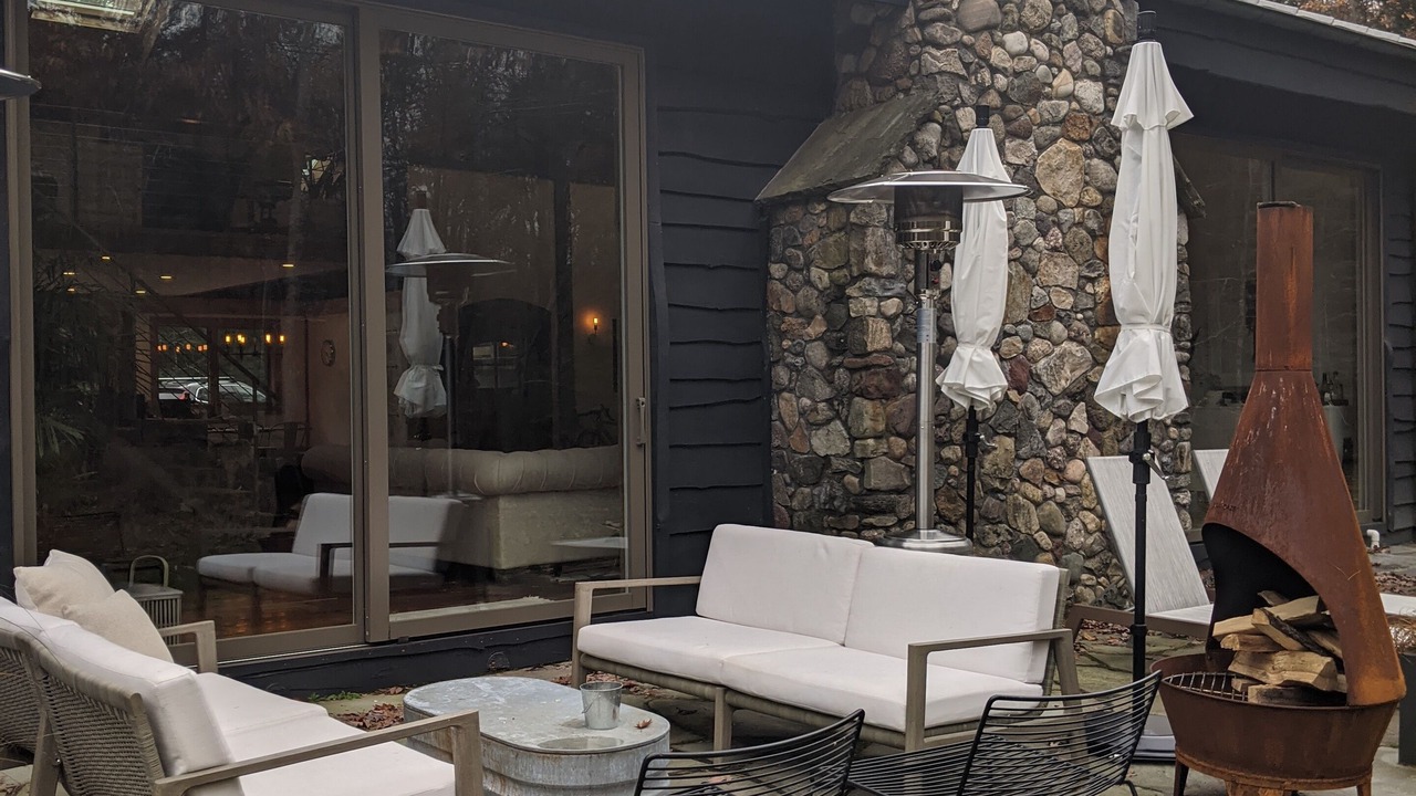 Enjoy your morning coffee on the bluestone patio with views of the pond, stream, and Overlook mountain. The patio includes outdoor sofas, lounge chairs, dining tables, propane grill and two propane heaters. Take a short stroll up to the private 10 acre hay-field which has a natural stone fire-pit perfect for roasting marshmallows.