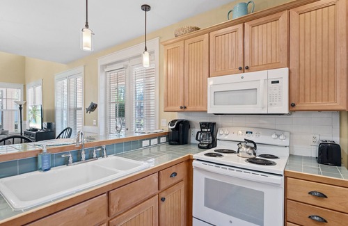 “Tranquil and peaceful” describes this lovely three bedroom, three bathroom vacation cottage located in the Laurel Grove neighborhood at the Resort. Our cottage is beautifully appointed with a lovely collection of upscale furnishings that invite our guests to relax and stay awhile. The beach entrance is about a 10-12 minute drive through the resort on the golf cart.