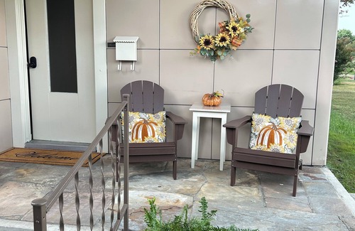 Relax in Uncle Ernie’s cozy 2-bedroom house. This unique all steel 1950s Lustron Home is decorated with mid century modern flair. Each bedroom has a queen bed and a TV. Relax and put your feet up in the cozy living area with a 55” TV. Modern updated kitchen with dining area. Coffee maker and full size washer and dryer included.