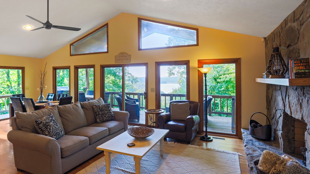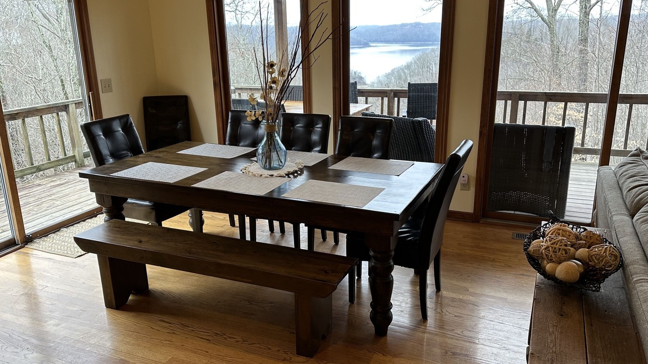 The house has a wrap around porch to experience the most nature has to offer and both Master Suites walk out to the deck. The other two rooms walk out to a covered patio with a lake view and comfortable chairs to relax in. There is plenty of parking in the driveway and easy boat turn around in the cul de sac. Unlike many properties on Center Hill lake the drive is NOT treacherous. There is a recreation area and boat ramp 1.8 miles from the house and Sligo marina is close by with pontoon boat rentals or boat slips available by the night. There are several hiking trails close by including Burgess Falls (20 minutes), Rock Island State Park (30 minutes) and Fall Creek Falls (50 minutes ) away. There are grocery stores, restaurants and activities 15 minutes away in both Sparta and Smithville. The Haven is the perfect place for sport, leisure, and getting away from it all!