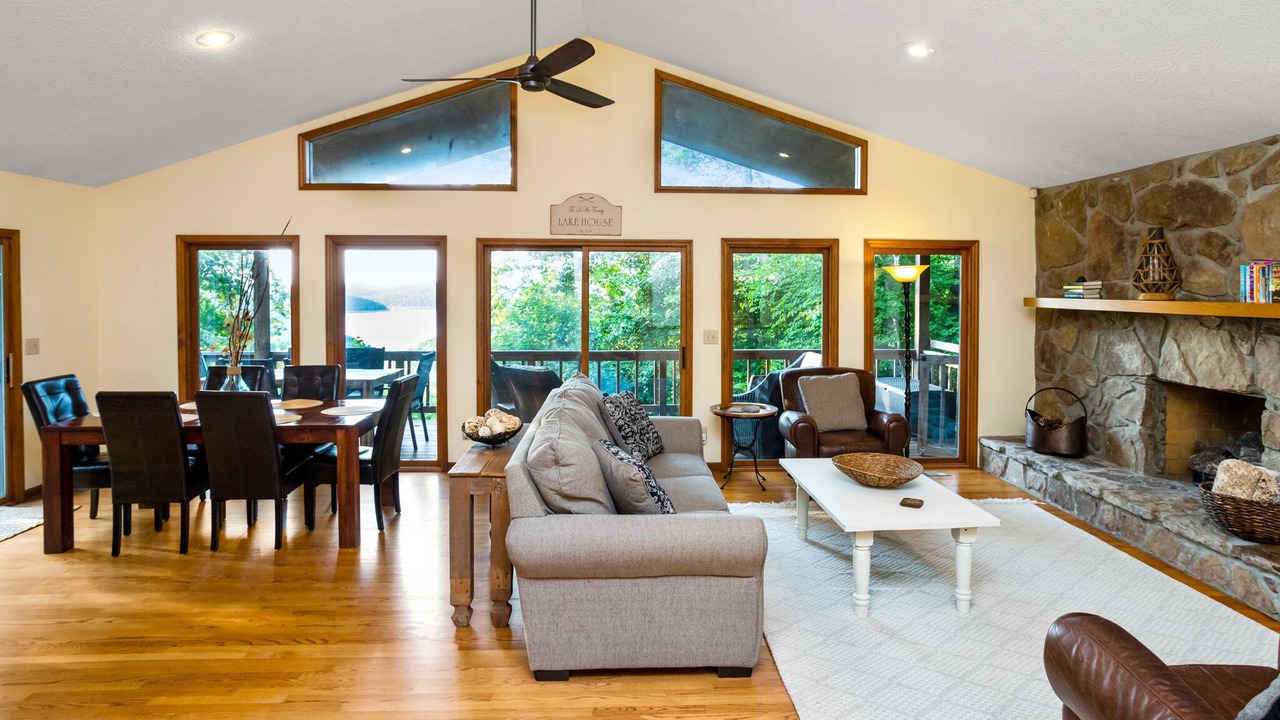 Looking for a place to relax and unwind? Looking for a place to boat, ski, and swim? The Haven is the perfect place for one or multiple families to come and enjoy the beauty of the outdoors! The home is nestled on 3 wooded acres on the end of a cul de sac so it is very private. You can sit out on the covered deck or patio and enjoy the beautiful year round lake view or relax by the fire at the fire pit that overlooks the lake or in the large hot tub. There is plenty of nature for the children to explore and safe areas for the children to run and play outside.