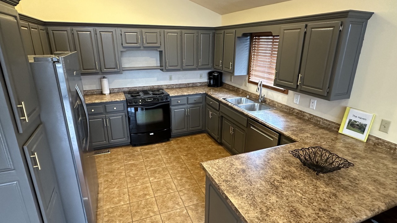 The kitchen is fully stocked with everything you need to prepare your meals. Pots/pans, coffee maker with k cups and 12 cup, blender, griddle, and mixer are all provided. There are both a gas and charcoal grill outside for your family cookouts. You will enjoy a fully stocked kitchen and nice linens for your comfort and convenience. One roll of paper towels and two rolls of toilet paper per bathroom are provided.