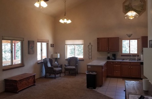 The Mountain Retreat is situated on an acre of forested land, with an ideal mix of privacy and close proximity to all the sights in and around Colorado Springs. The home has great views of Ute Pass, and the surrounding mountains. Step out the front door, or on to wrap around deck, and the beautiful nature that Colorado is known for is there. Hummingbirds, deer, fox, and Black Bear just to name a few.