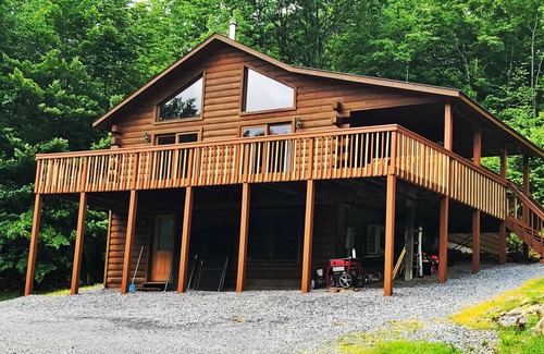 Cradled high among the pines and hardwoods on acres of total privacy is our mountain log home located in the foothills of the Adirondack Park.