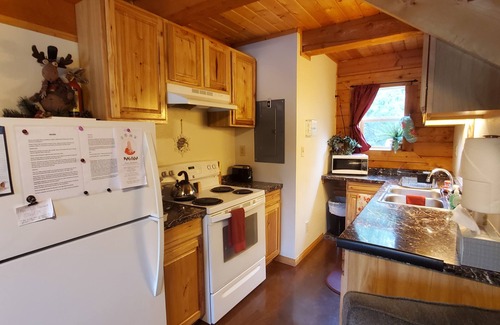 The Aurora Cabin is a fully furnished log home that is perfect for a Family vacation, or extended stay. The Aurora Cabin was designed for your comfortable stay with large bedrooms with two queen beds per room, comfortable living room, large full bathroom and washer & dryer With our vans we can provide transportation and tours. Being a family ran business we are small enough able to be very flexible with your itinerary making your stay relaxing and unforgettable.