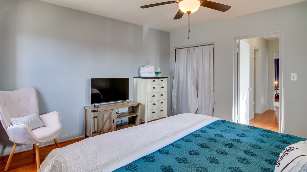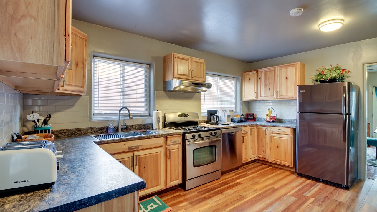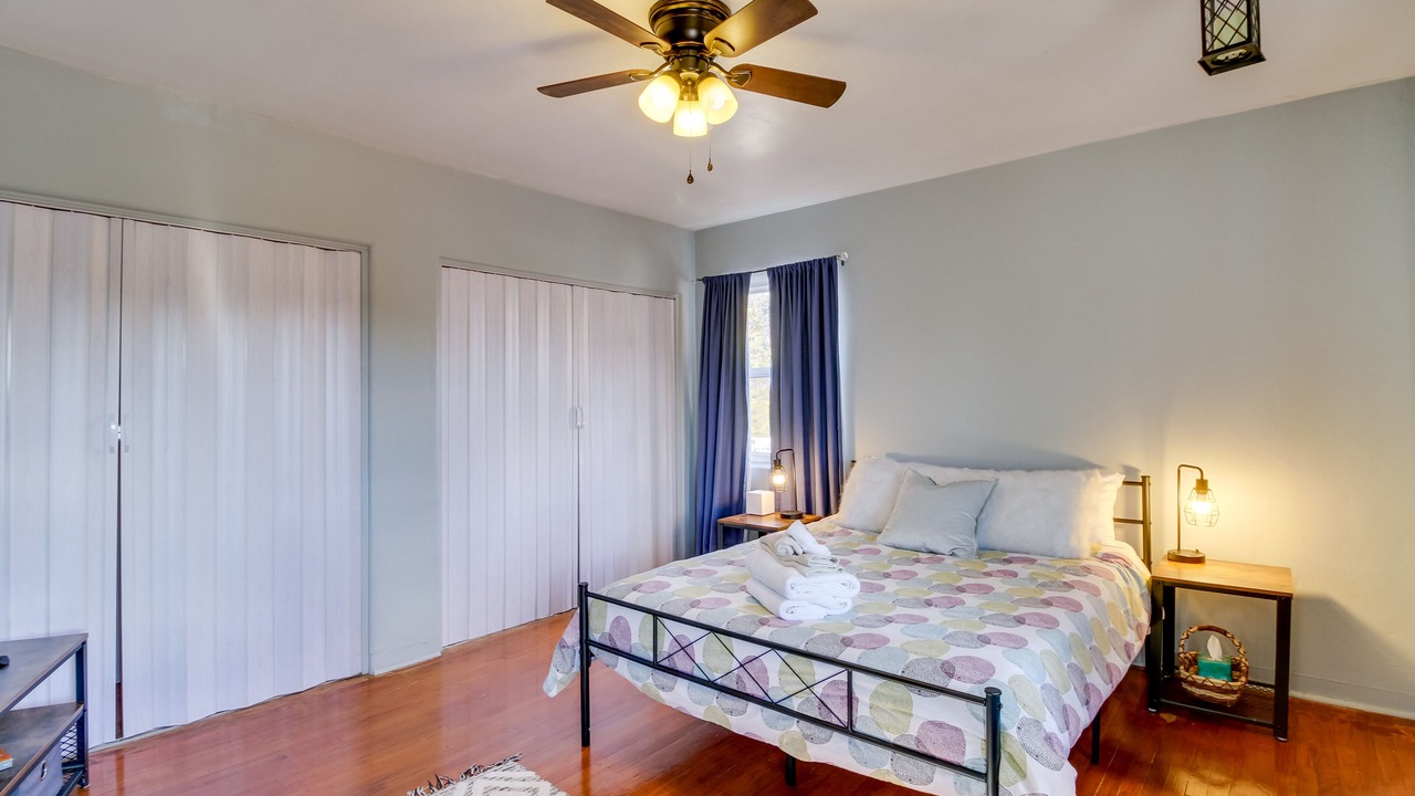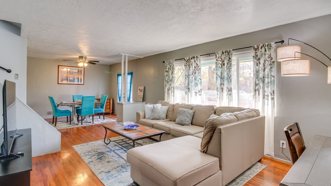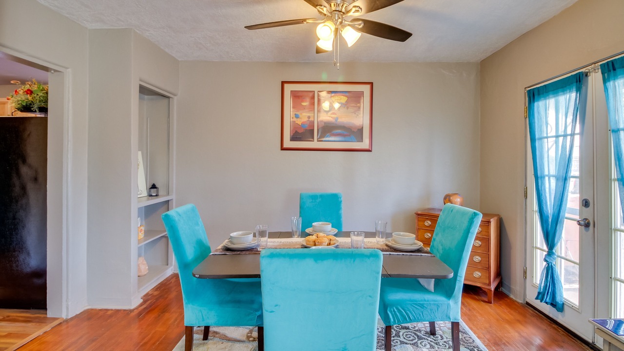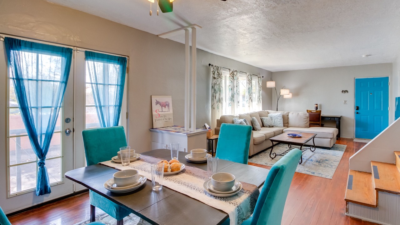 Experience the enchanting beauty of Albuquerque at this 2-bedroom, 2-bath vacation rental. Located less than a mile from downtown, this family-friendly home offers a central location and an office area with an additional futon, so if you’re a homebody, a remote worker, or an urban explorer, you’ll be able to make the most of your stay. After a day of museum hopping and sampling authentic green chile, head home to relax on the patio. This house is the ultimate retreat for your New Mexico getaway.