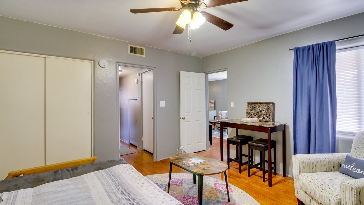- NOTE: Your safety matters. This property features 3 exterior security cameras. These cameras are outward facing and do not look into any interior spaces. Camera 1 is located on the front of the main house facing outward, camera 2 is located on a tree facing the shared yard, and camera 3 is located on the fence facing the shared yard. These cameras actively record video and audio when motion is detected and will be turned on during your stay