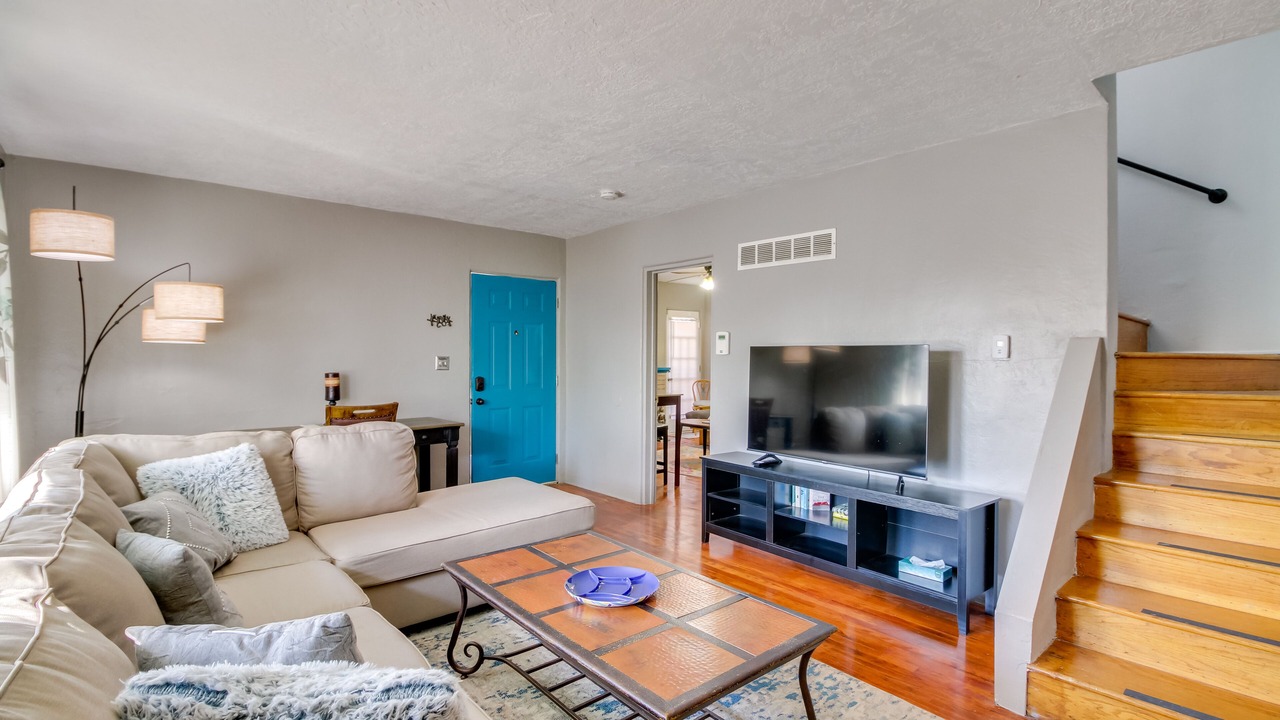 HOME HIGHLIGHTS: Private patio w/ outdoor seating, rooftop deck, Smart TVs, books, group-friendly dining table, office area w/ laptop-friendly desk, living room workspace, walk-in shower on 1st floor, shower/tub combo on 2nd floor