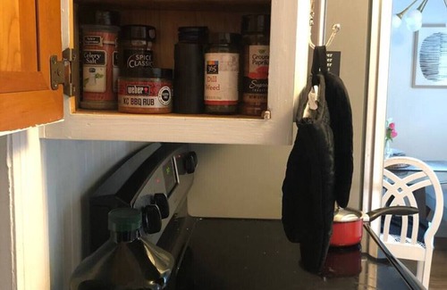 Prepare meals in a fully stocked kitchen with oils, spices, and cookware. Rest easy on memory foam mattresses, enjoy complimentary coffee, toiletries, towels, and high-speed Wi-Fi. The upstairs master bedroom boasts a private bathroom for added comfort.