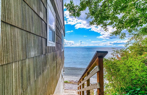 Oh so private and perfectly perched, this Point Roberts cottage studio boasts pristine views of the Strait of Georgia, Vancouver Island, and the passing ferries to/from the Tsawwassen Ferry Terminal. With its unforgettable location and expansive outdoor space, your time spent enjoying the fresh sea breeze will come effortlessly. Less than 10 steps down from the patio, find yourself on the sand, enjoying the beach.