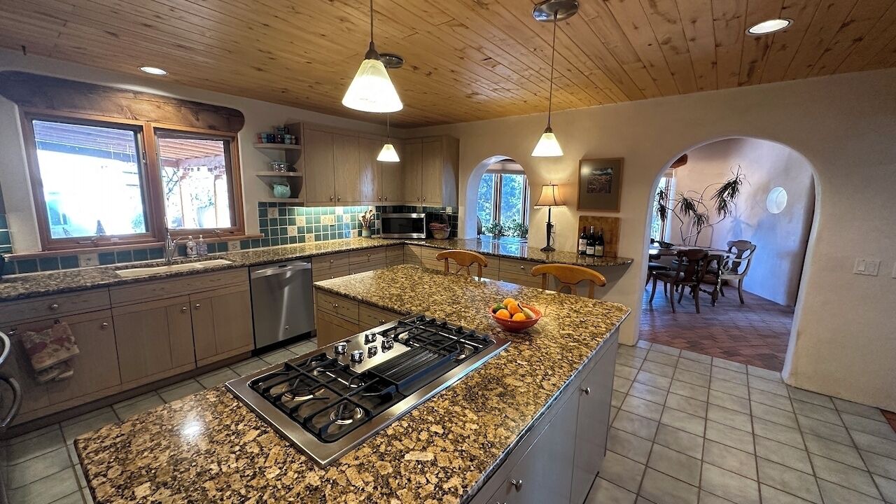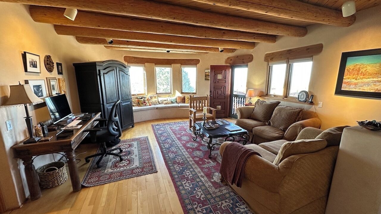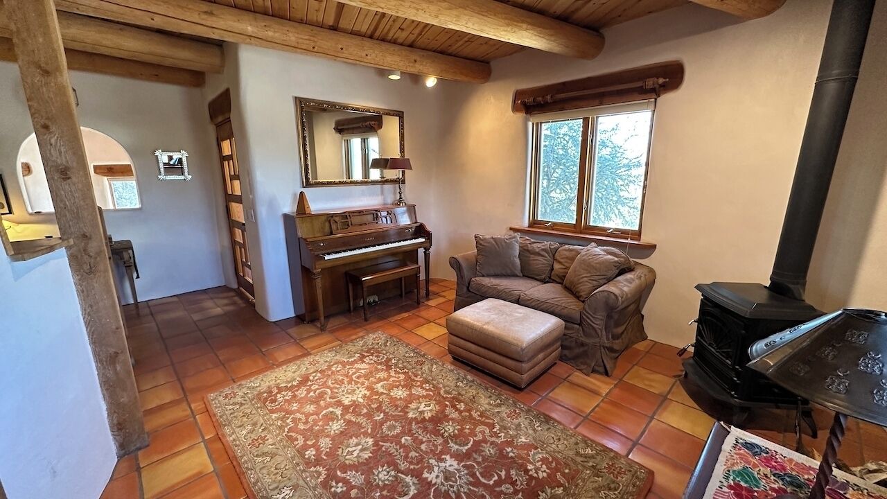 Fully furnished traditional New Mexico style home located in the historic Seton Village, 17 minutes from the Santa Fe Plaza. The charming home has viga ceilings, saltilo tile flooring, curved archways, nichos, and bancos.