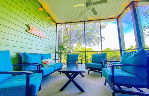 Cook up a storm in the fully equipped kitchen, boasting granite countertops and stainless steel appliances. Enjoy your meals or a margarita made with our blender on the comfortable back patio overlooking the tranquil lake. Each room has a TV, and we provide high-speed Wi-Fi for all your streaming and browsing needs. Games and toys are also available to keep your little ones entertained when you're not out exploring the resort or theme parks.