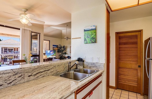 Unit 321 at the Shores is your home away from home. It's been remodeled with travertine marble bathroom, vessel sinks, bamboo flooring, new kitchen counters, etc. This unit is over 1200 square feet in area and furnished with Polynesian style furniture and decorated with numerous Hawaiian art prints by local artists. It comes with a fully equipped kitchen, A/C and clothes washer and dryer.