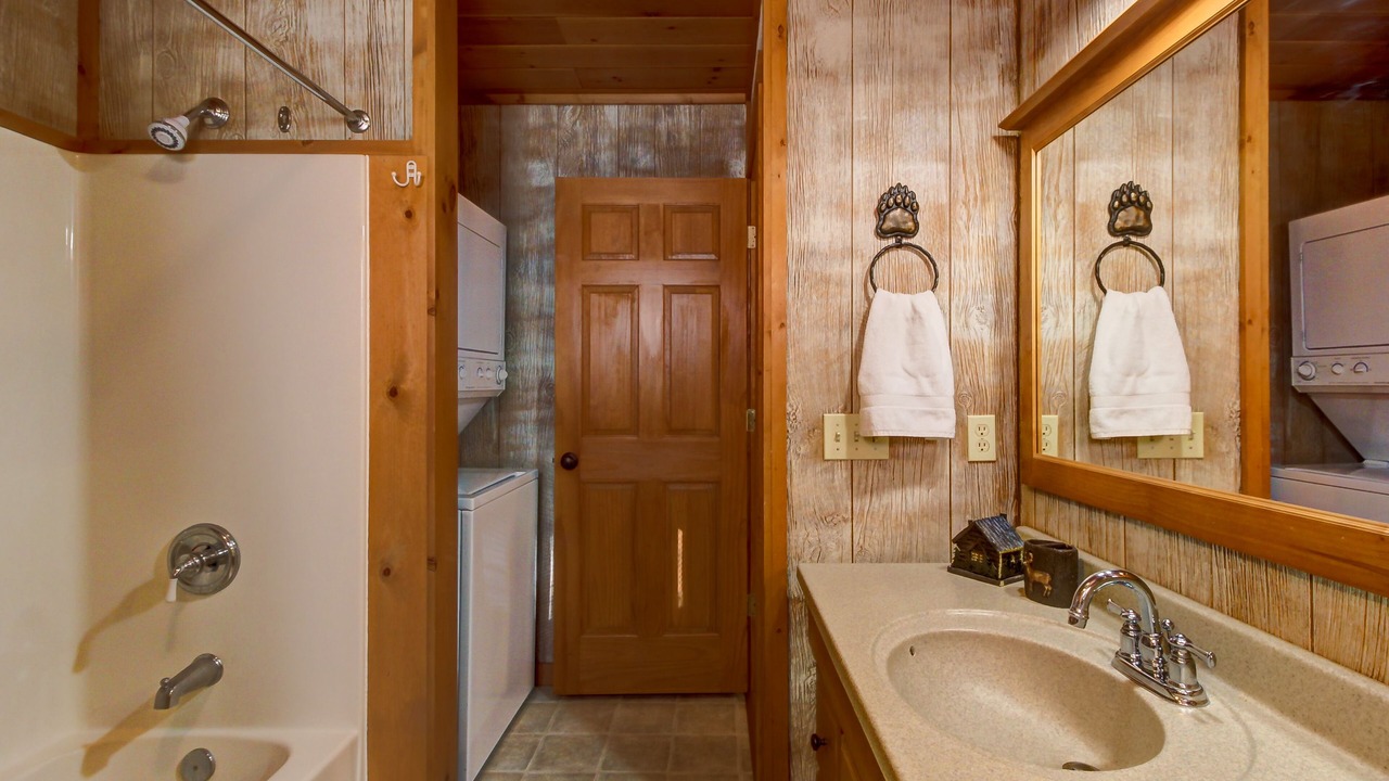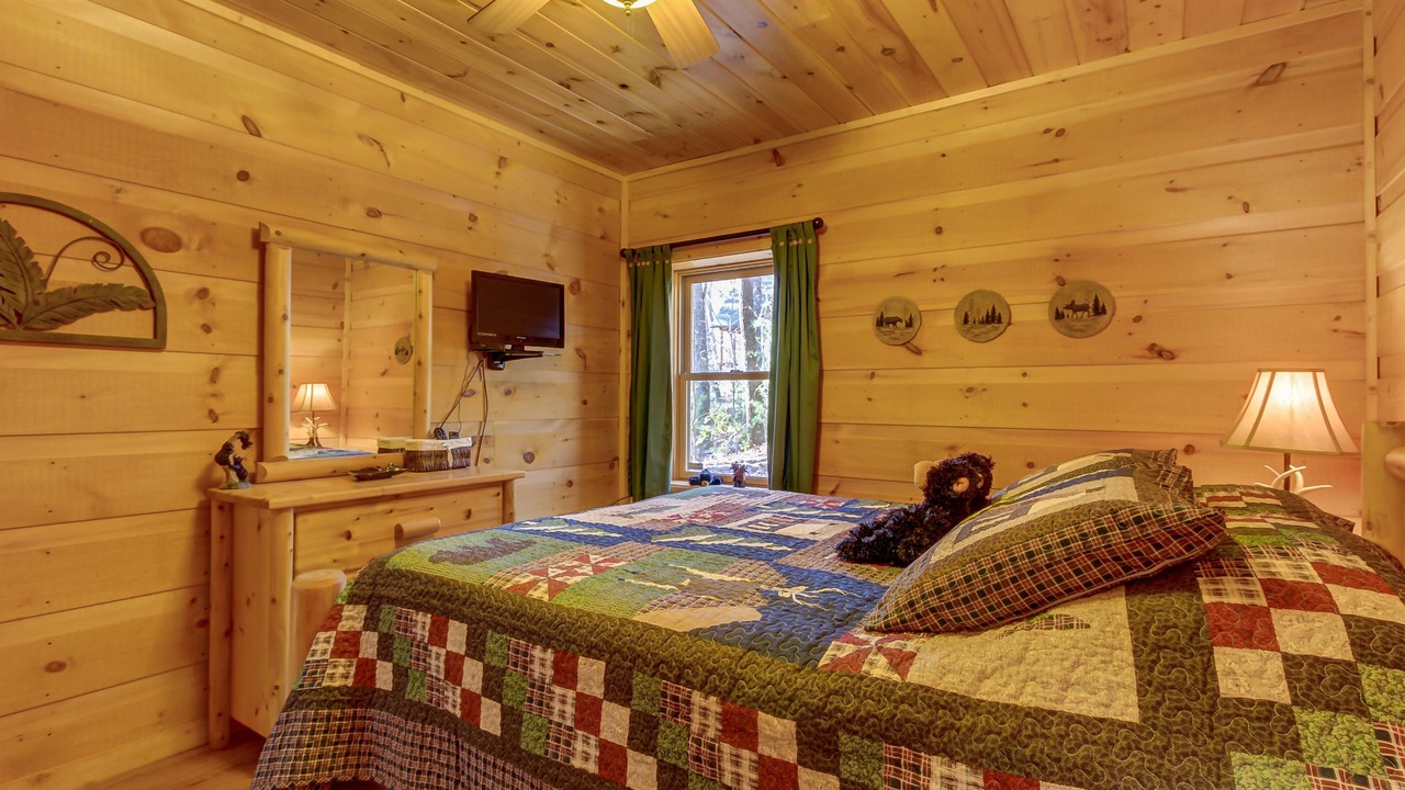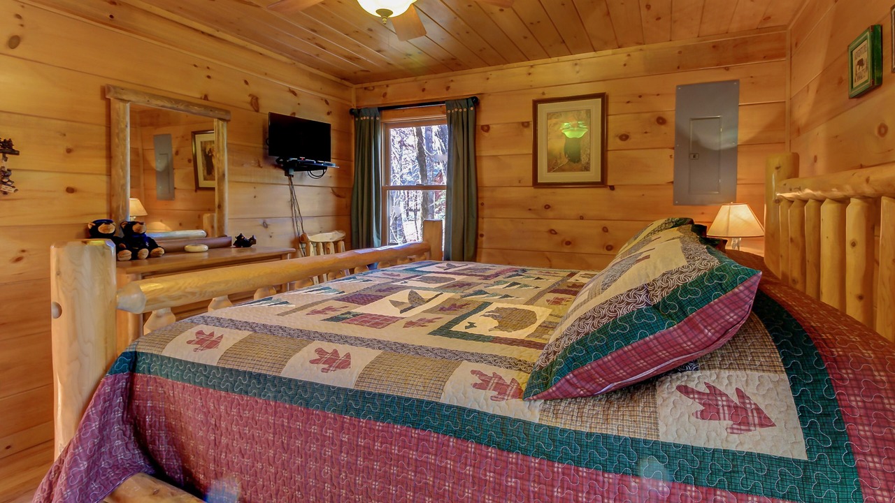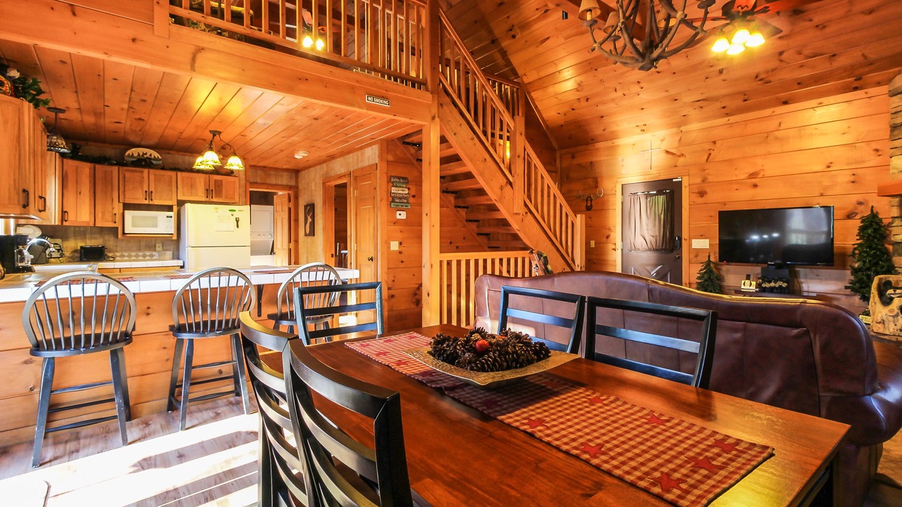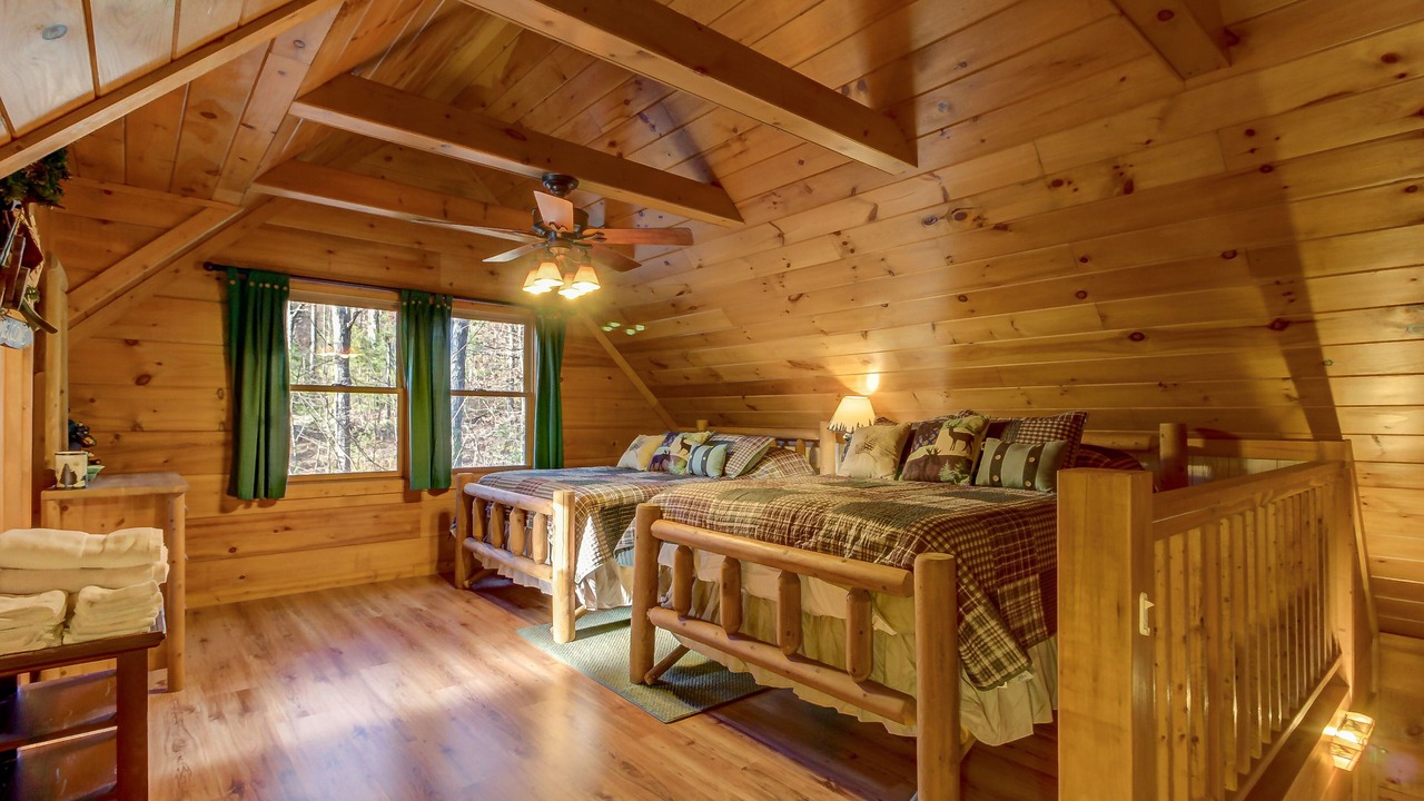 This three-bedroom (plus a loft), three-bathroom vacation cabin accommodates up to 10 guests, and all the rooms have a flatscreen. The master bedroom boasts a king-size bed. The two other bedrooms, as well as the loft, have queen beds (please note the loft does not have a door). There's also a stacked washer and dryer off the master bath for your added convenience.