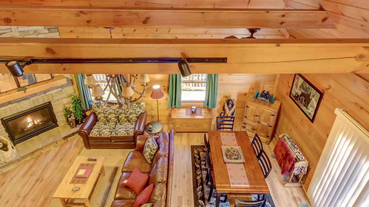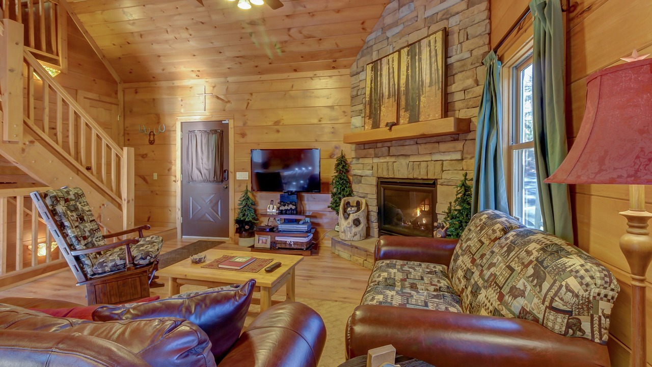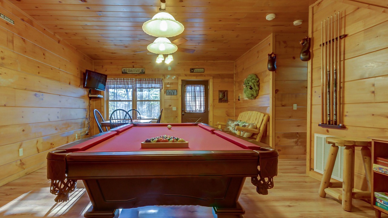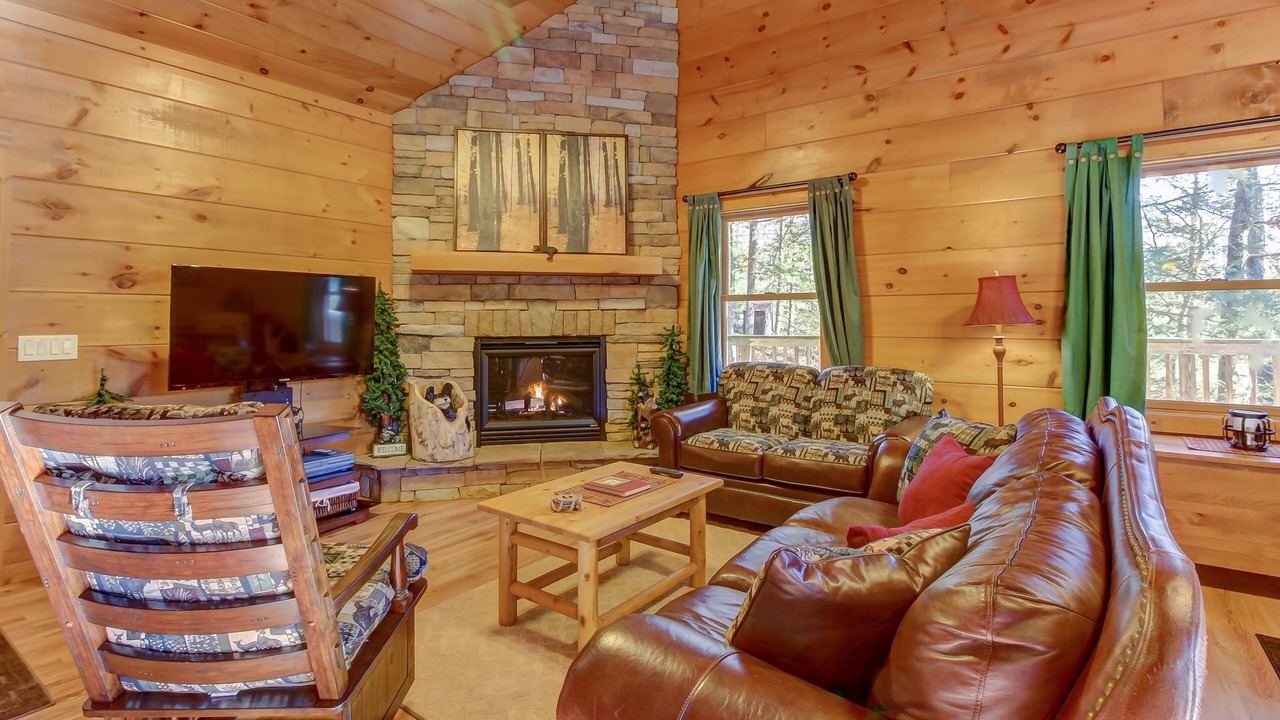 Located a short drive southwest of Pigeon Forge, this homey cabin puts you within reasonable driving distance to in-town convenience. Enjoy the seasonal swimming pool and fishing pond access from Memorial Day to Labor Day - the pool is located just off of Happy Hollow Road just a half mile from the cabin.