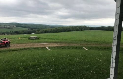 Enjoy off grid living in this beautifully decorated cabin in the hills of Western NY. Scenic views in every direction. Watch the deer and other wildlife from the porch as well as the buggies plodding by. This is the perfect place to unplug and relax. There is NO running water or facilities. There is an outhouse and plenty of water provided in 5 gallon jugs. This is camping! Not accessible during the winter when there is snow - driveway is not maintained.