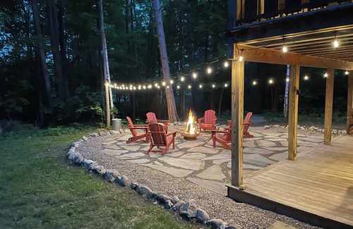 RiverWalk Lodge is a newly renovated 3 bedroom, 2 1/2 bath cabin with waterfront access to the W. Branch Ausable River and seasonal mountain views. Located in the hamlet of Wilmington this cabin is close by to all the Adirondacks have to offer from fishing and kayaking from our shore to hiking, biking, and skiiing! Our cabin is less than 5 minutes to Whiteface Mountain and 15 minutes to Lake Placid. The cabin sleeps 6 -8 guests and boasts 3 porches, 2 living areas a gourmet kitchen, wet bar and fire pit area.
