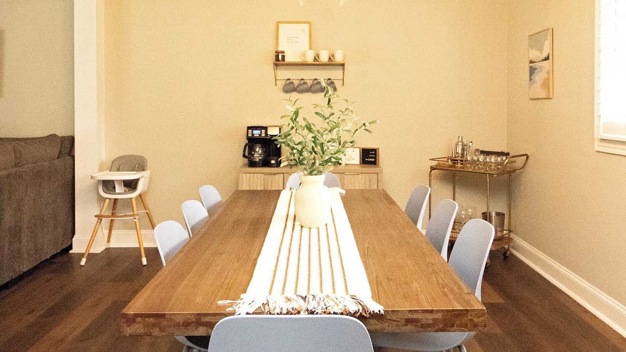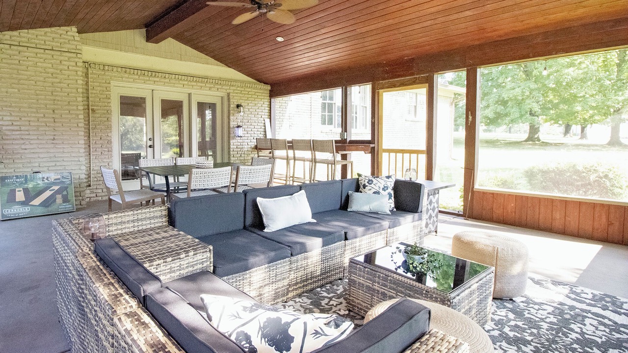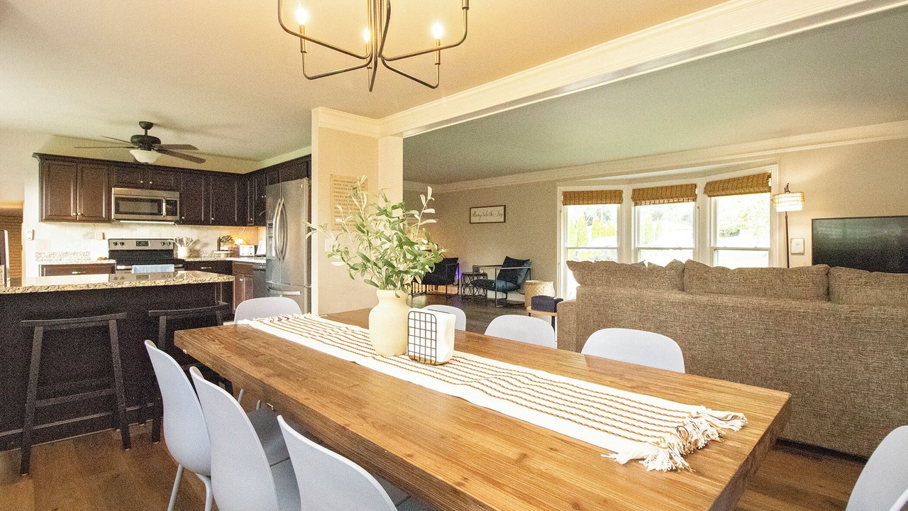 - Dining Area: Large dining table with seating for 8, perfect for family meals or game nights. Outdoor dining table for 6 along with 4 outdoor barstools.