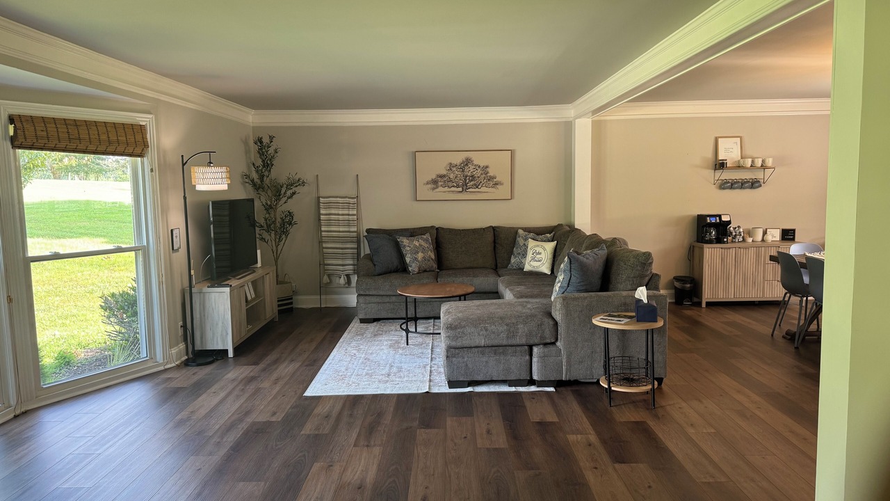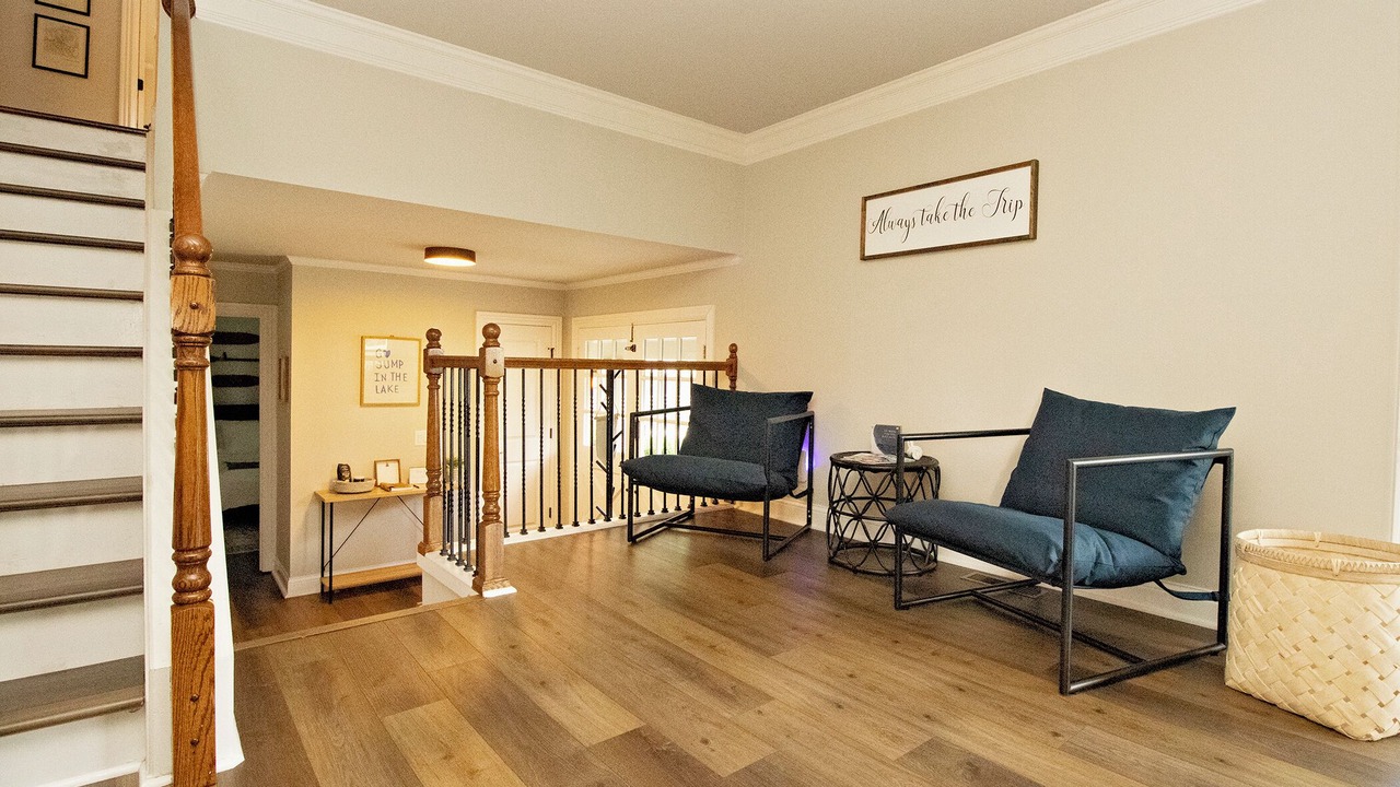 - Living Area: Open-concept living space with a cozy fireplace, flat-screen TV, and plenty of seating for family gatherings or movie nights. Lots of games to enjoy with the family and a cozy reading nook to enjoy your favorite book!