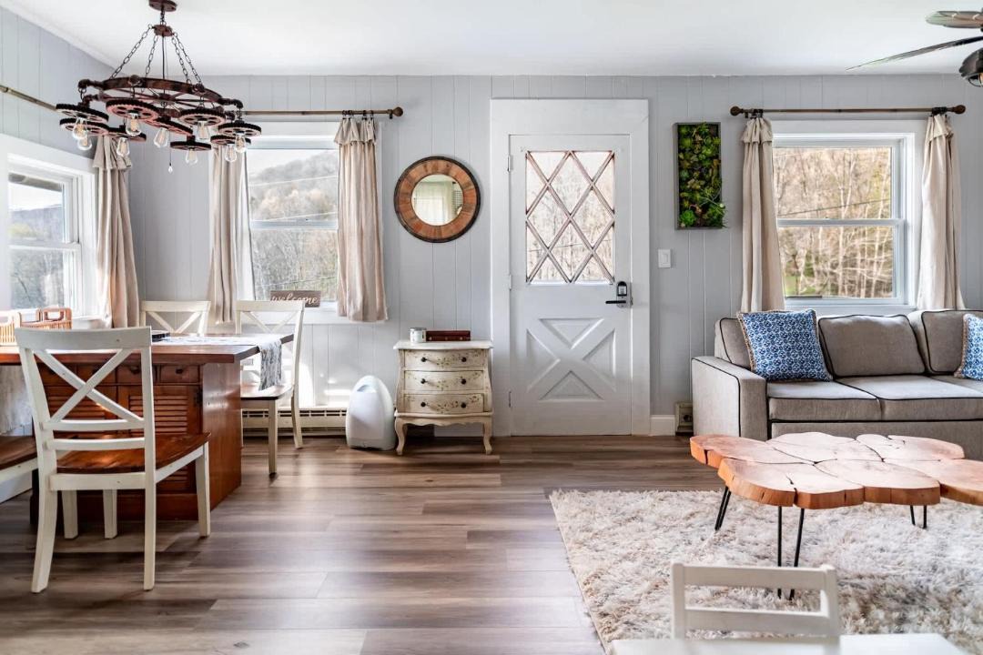 Offering a garden, Cozy Andes Cabin with Scenic Views features accommodations in Andes. Both free Wifi and parking on-site are accessible at the vacation home free of charge. On clear days, guests can head outside to enjoy the vacation home's outdoor fireplace or simply kick back and relax. Featuring a patio and mountain views, the vacation home includes 1 bedroom, a living room, flat-screen TV, an equipped kitchen, and 1 bathroom with a shower. Towels and bed linen are available in the vacation home. For added privacy, the accommodation features a private entrance. The vacation home has a picnic area where you can spend the day outdoors. Delaware Ulster Railroad is 13 miles from Cozy Andes Cabin with Scenic Views. Greater Binghamton Airport is 80 miles from the property.