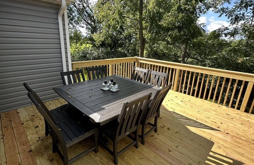Brand new 5 bedroom, 3 full bath home in a quiet, beautiful neighborhood. (2) sleeper sofas (memory foam mattresses) in basement accommodate 4 more guests. We sleep 14 comfortably. All linens, towels and toiletries are included. Kitchen is fully equipped, including spices and essentials at your disposal. Our kitchen/eating area can seat 14, plus. Enjoy large gathering spaces indoors and outdoors. Large basement with shuffleboard, darts and 70" TV. The deck has great views of mountains and farmland and has a propane fire pit and seating for 12. Driveway can accommodate 5 cars. Our home is waiting to welcome you, your family & friends! Parties are not allowed without permission. There are ring cameras at the front/back of property for security reasons, but not inside. Our local area, also known as Happy Valley, includes Penn State University, Downtown State College, Historic Bellefonte, Fishing in Spring Creek-Fisherman's Paradise, Tussey Mountain/Skiing, Bald Eagle State Park, Golfing and ATV riding. We are a 12 minute drive to Beaver Stadium, Bryce Jordan Center, Pegula Ice Arena and Jeffrey Field. Come Stay with us!