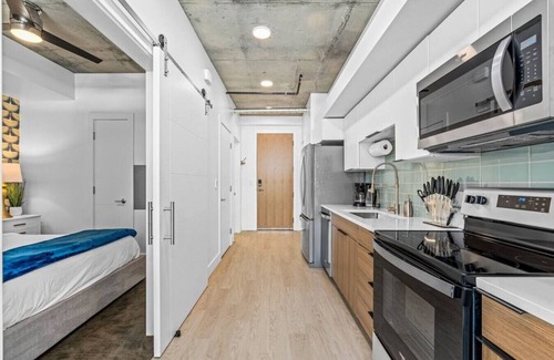 The amenities here are absolutely amazing. Check out the photos of the rooftop pool & hot tub, huge gym, pool tables and poker tables, co-working spaces and so much more!