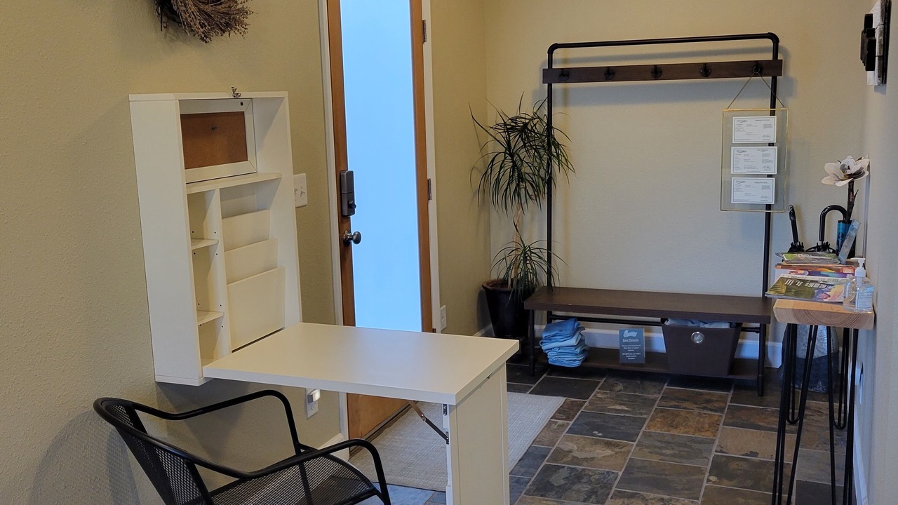Your retreat awaits! With over 400 5-Star reviews on Airbnb! This private ensuite offers a true escape. Perfect for vacationers or business travelers seeking reprieve from the day to day hustle and bustle. This newly remodeled suite is complete with luxury features and gorgeous vaulted ceilings. Park in the driveway and enter through a private entrance where you can kick your shoes off in the mudroom. The adjoining laundry room is available for use when not being used by the owner as this is a shared space. Through the bedroom entrance you will find a very comfy queen bed that sits atop a cushy rug. Your private ensuite bathroom includes a luxury shower with pebble floor, heated bathroom floors, and plush towels. Enjoy the security of a locking bedroom door, smart TV, and a private sliding glass door into the back yard. The gas grill located on the back patio is available for use during your stay. This renovation was completed April 2018 and is simply stunning! Local Colorado nature themed in its decor and black out curtains to encourage your escape from the chaotic world around. A large mini fridge, gas grill, and single-cup coffee maker with coffee and tea are provided. Some snacks included. Breakfast is not provided. Are you a business traveler? Utilize the fold-down desk in the mudroom, comfy chair, and boosted wifi for taking your calls and working on your computer.