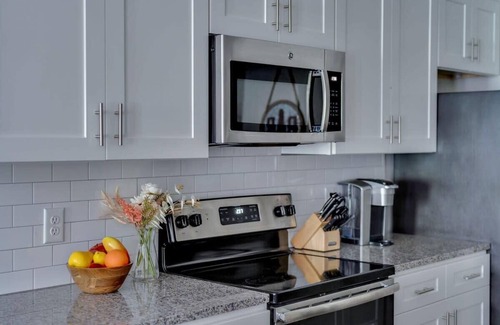 You can rest easy knowing you found the perfect downtown Chattanooga loft for your weekend retreat or 6-month stay! As you enter Exchange at Cameron Harbor, you will find two private bedrooms with attached bathrooms. Each bedroom is stocked with luxurious sheets and bedding, smart TVs, blackout curtains, and more! Each bathroom hosts a tub/shower combo and is stocked with our starter pack of essentials including body wash, shampoo, & conditioner, hair dryers, and plush towels and washcloths.