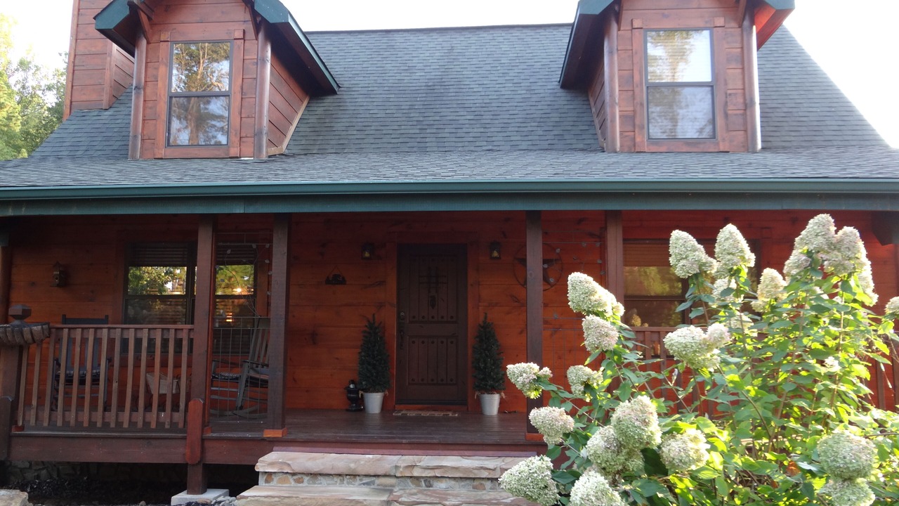 Outside, enjoy the large yard, great for kids to play and for family fun time. Enjoy a game of horseshoes, hang out around the outdoor fire pit, or cook for the family on the charcoal grill. Or relax in the hot tub after a long day of hiking, or just sit on the porch and enjoy the mountain view and the peace and tranquility of nature while having your morning coffee or family meal on one of the two back porches or front porch.