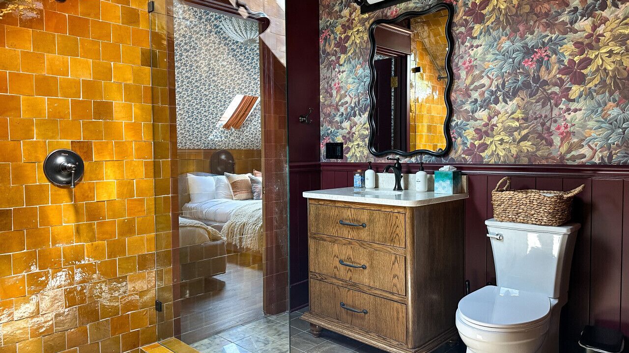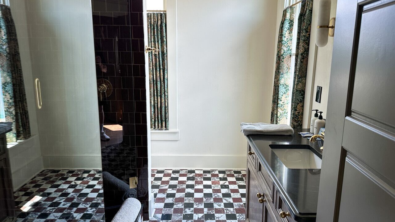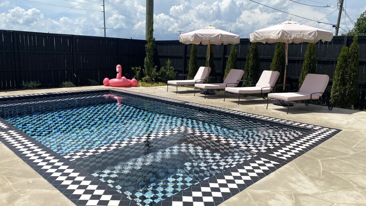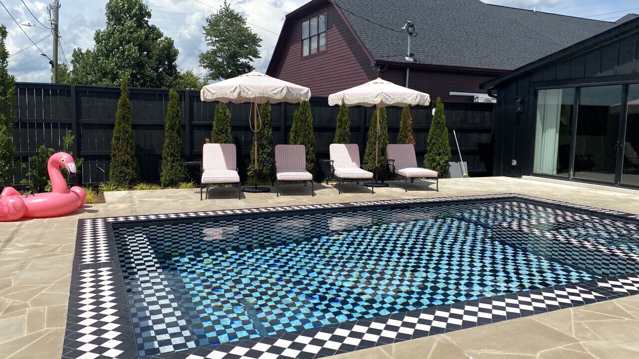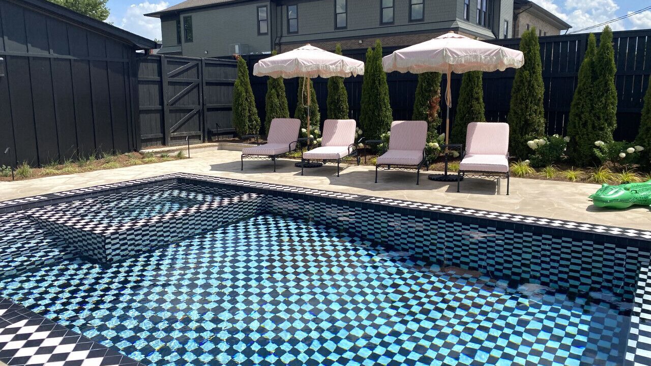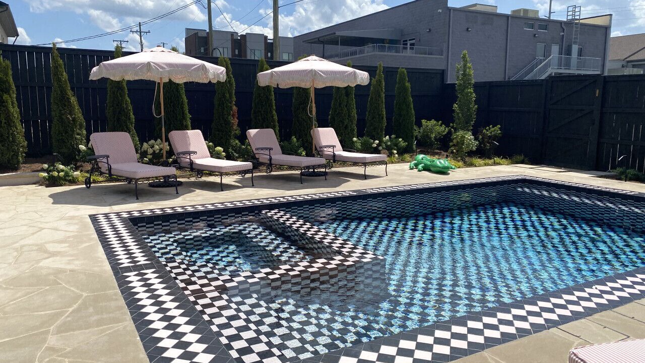 Immerse yourself in ultimate relaxation with our 25-foot private, checker pattern tiled heated pool and integrated hot tub, both lined with elegant pink and black tile. Whether you’re swimming laps, cooling off on a hot day, or enjoying a tranquil float, this stunning pool offers a perfect oasis. The integrated hot tub provides the ideal spot to unwind after a day of exploring Nashville. Both the pool and hot tub are heated and available for year-round use, ensuring you can relax in luxury no matter the season.