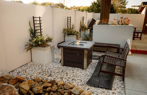 Private Couple's Retreat! Relax in your own quiet courtyard with waterfall, hot tub, outdoor dining and grilling entertainment space! The house is cozy, luxurious and modern, perfect for couples who want a refreshing getaway. Enjoy a rainfall shower experience in the spacious European style shower. Full Sized washer and dryer, linens, and kitchen necessities are provided. Complimentary bottled water and Keurig coffee and hot chocolate provided. Wifi is through StarLink and works good.
