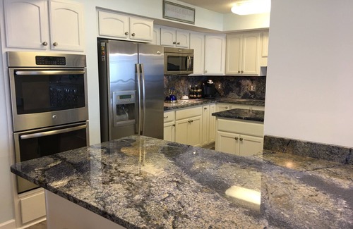 - Completely renovated kitchen with double wall ovens, flat glass cooktop, full pantry cabinet, gorgeous granite countertops, with island and breakfast bar
