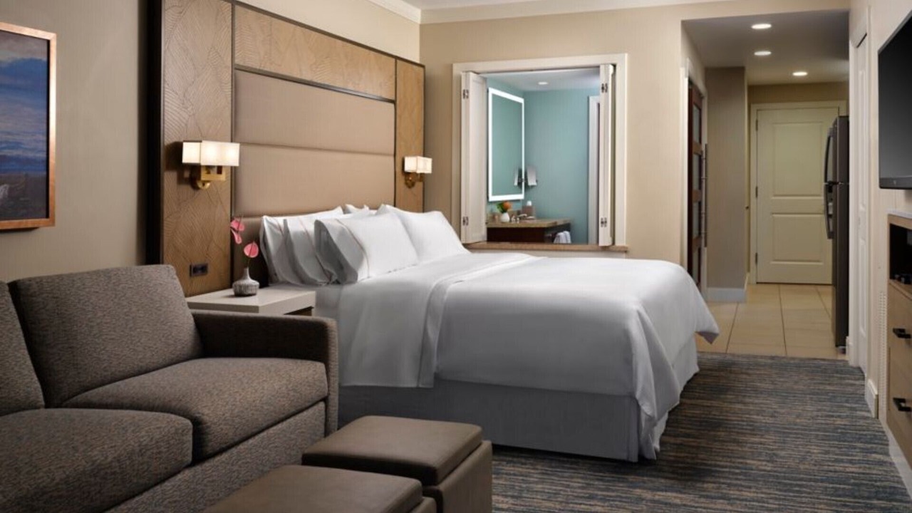 – Sophisticated Studio Living: Enjoy the comforts of a plush Westin Heavenly® King Bed, a queen-size sleeper sofa, and a fully equipped kitchenette with everything you need for light cooking or preparing snacks.