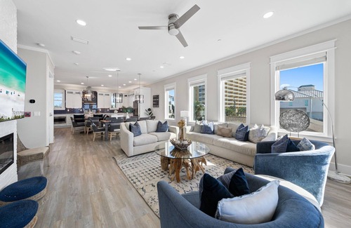 As you step inside this luxury Panama City Beach rental, you'll be greeted by a bright and airy ambiance, with large windows that flood the space with natural light and provide breathtaking views of the Gulf. The open-concept living area seamlessly blends comfort and style, featuring plush seating, elegant decor, and a fully equipped kitchen that invites culinary adventures. Each bedroom is thoughtfully designed to ensure a restful night's sleep, with ample space and modern furnishings, while the bathrooms offer a touch of luxury with their contemporary finishes.