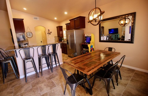Enjoy this beautiful home with your family when visiting Carlsbad, Nm. This newer 3 bed 2 bath home is located in a new, clean and safe neighborhood on the north side of Carlsbad. Play ping pong, Pac Man arcade games, Snes Games, have dinner under the gazebo, or roast marshmallows at the fire pit - you are going to LOVE this home! 2 bedrooms have king beds with duvet covers that are washed after each guest just like the Ritz Carlton! The bunk room (sleeps 4) has 2 full beds and a Tv with a game console.