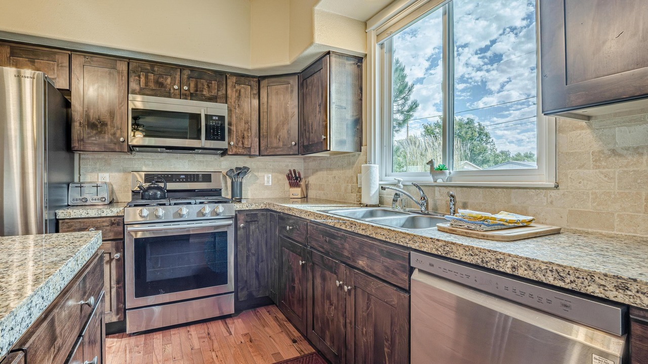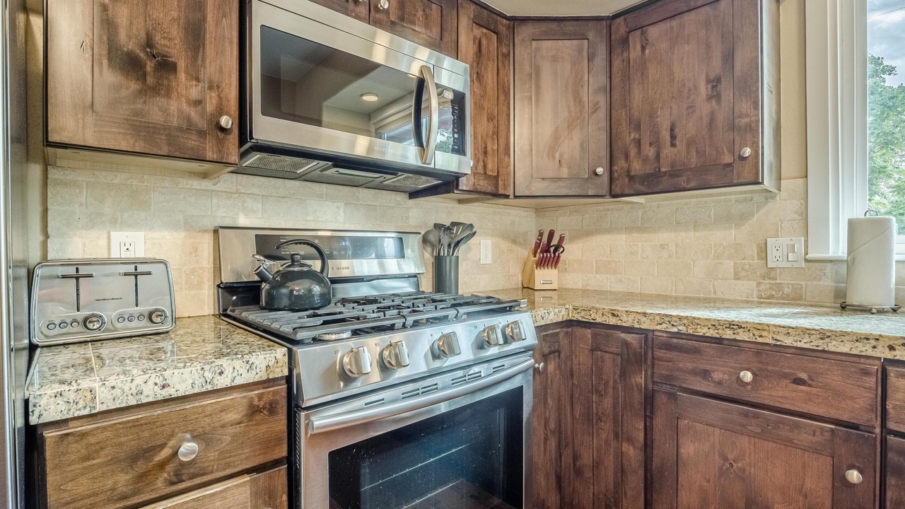 + Convenient Amenities: Experience the convenience of our full-size washer and dryer and designer kitchen stocked with all essentials, including a dishwasher, refrigerator with ice/water dispenser, microwave, stove, and oven.