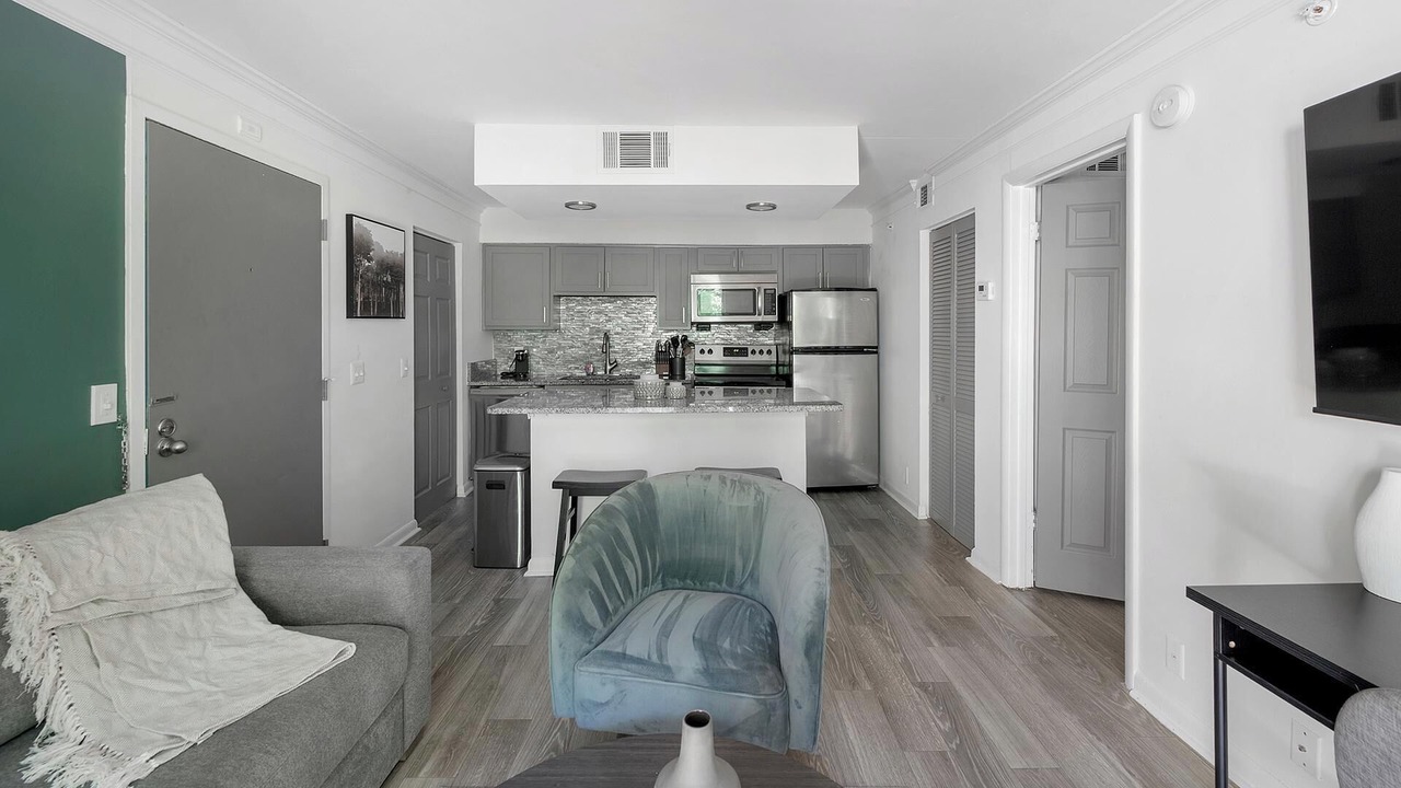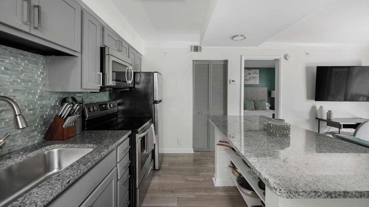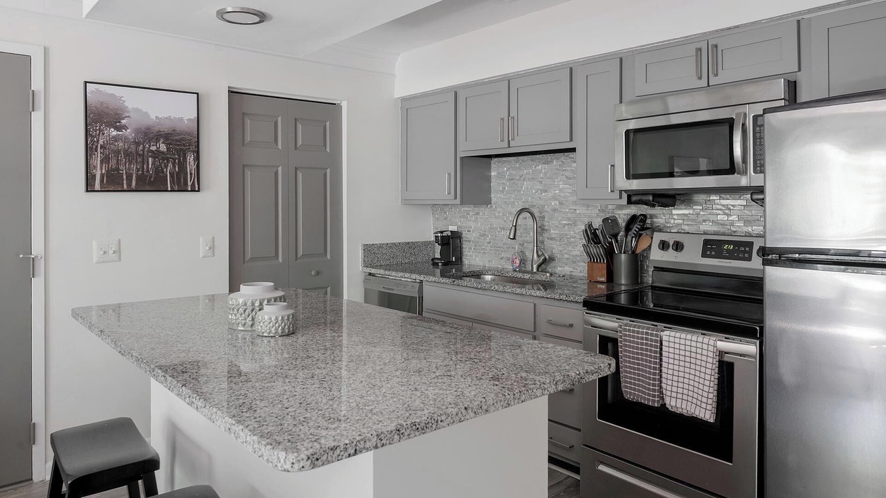 Set in Nashville’s charming West End, The Metropolitan puts you near Percy Warner Park trails, Green Hills shopping, and Belle Meade’s historic beauty, all just minutes from Music City’s vibrant core. Perfect for flexible stays, our apartments feature full kitchens with granite countertops, stainless steel appliances, and open-concept layouts. Recharge by the resort-style pool, hit the 24-hour gym, or enjoy the leash-free pet park and on-site walking trails.