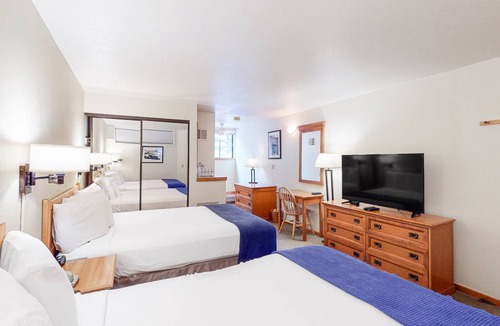 You'll love the boutique Aspen Mountain Lodge - cozy up by the fireplace in the lobby, or enjoy a relaxing dip in the heated pool and hot tub. Early risers will appreciate the continental breakfast, and everyone will enjoy upscale perks like central AC and ski storage.