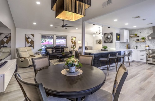 Luxury 2 Story, 4BR Single Family home, convenient for 8 guests. Fully remodeled, open living area with a modern kitchen, secondary/entertaining living room with a pool table. The house is equipped with a private gym, backyard with pool, heated spa for your day & night entertainment. Located in a quiet neighborhood, near by the most desired shopping centers with variety of stores and top rated restaurants. Close by to some of the best Golf courses in Las Vegas and top rated local casinos.