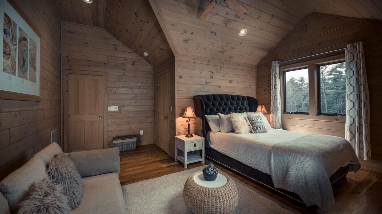 Bear suite: Master bedroom complete with its own lounge area and large bathroom with soaking tub