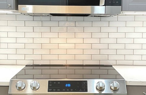 ★Kitchen is equipped with a modern induction stove and pots, pans, utensils and more. French door refrigerator and quartz countertops.