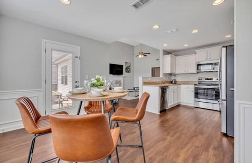House includes all amenities of home including a fully stocked kitchen, keuig coffee maker, blender, toaster, work space, washer/dryer, smart tv's in all bedrooms and living room, free wifi, towels, shower gel, shampoo/conditioner and adjustable thermostat.