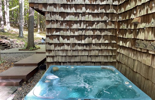 This premier ski property is just a short drive away from the top of the mountain where you can park your car and ski down. It also makes a quick and easy drive down to the home at the end of the day without having to deal with general parking at the ski resort (this property is not ski-in, ski-out). After a long day of adventuring the mountain, enjoy a fire in the outdoor firepit, cozy up to the pellet stove fireplace, or relax in the large 8-person outdoor hot tub and enjoy the stars!