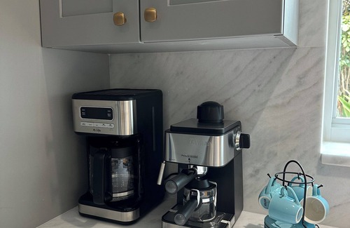 Coffee machine, espresso machine, knife set, toaster, air fryer, blender, waffle maker, ice maker, cookware, glassware, dishware, utensils, hot water kettle, filtered water, microwave and more.
