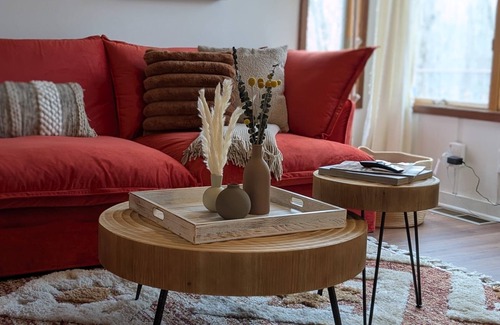 Poconos Nest & Nook: A Cozy King & Queen 2BR with a jacuzzi room facing nature is located in East Stroudsburg. Poconos Nest & Nook: A Cozy King & Queen 2BR with a jacuzzi room facing nature provides accommodation, featuring Child Friendly, Hot Tub, Laundry, among other amenities. This House features Child Friendly, Hot Tub, Laundry, to make your stay a comfortable one.